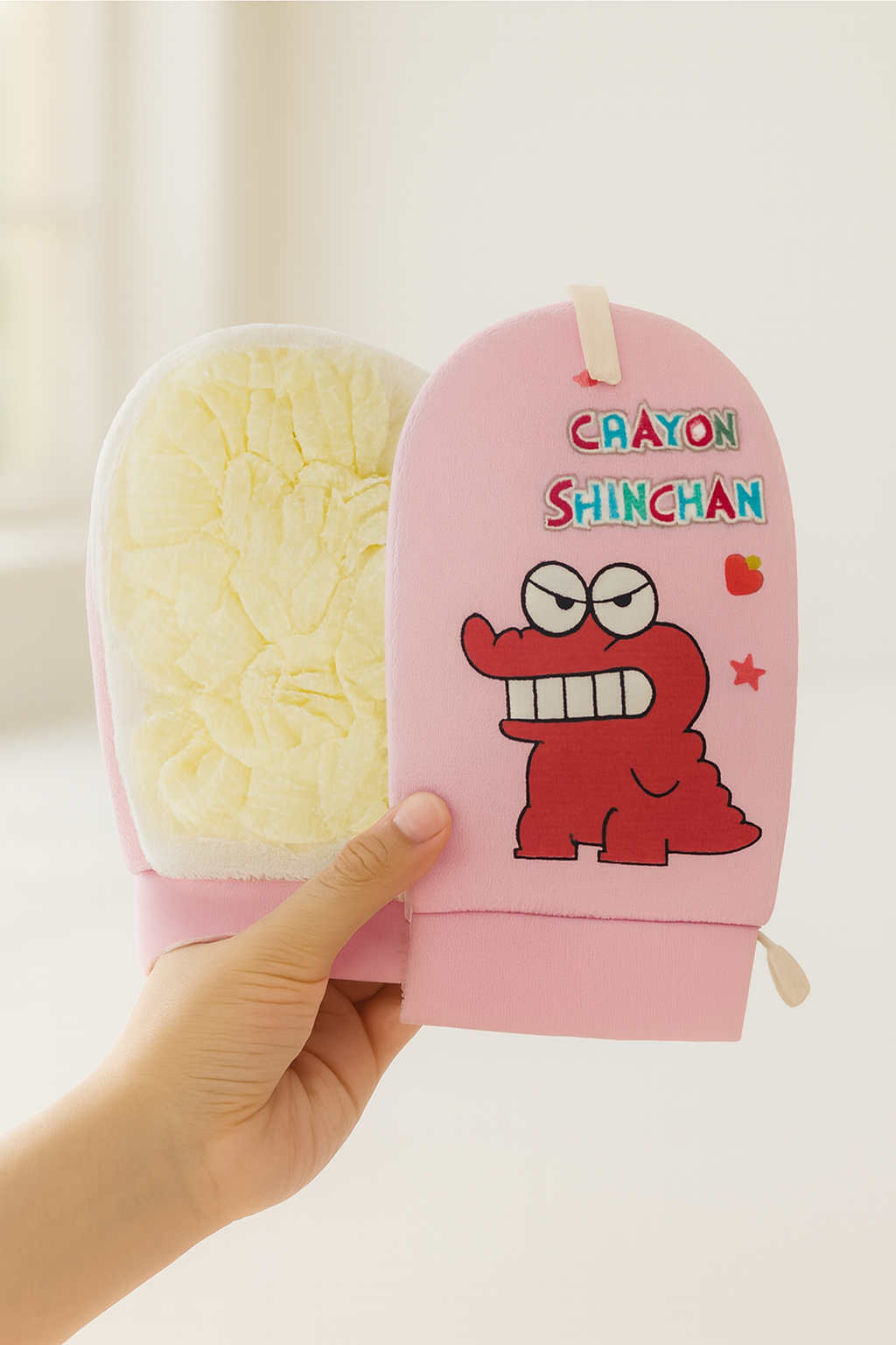 لیف حمام فانتزی طرح Shinchan با طراحی بامزه و رنگ صورتی ملایم، انتخابی جذاب برای کساییه که هم به کیفیت اهمیت میدن هم به ظاهر خاص و فانتزی.